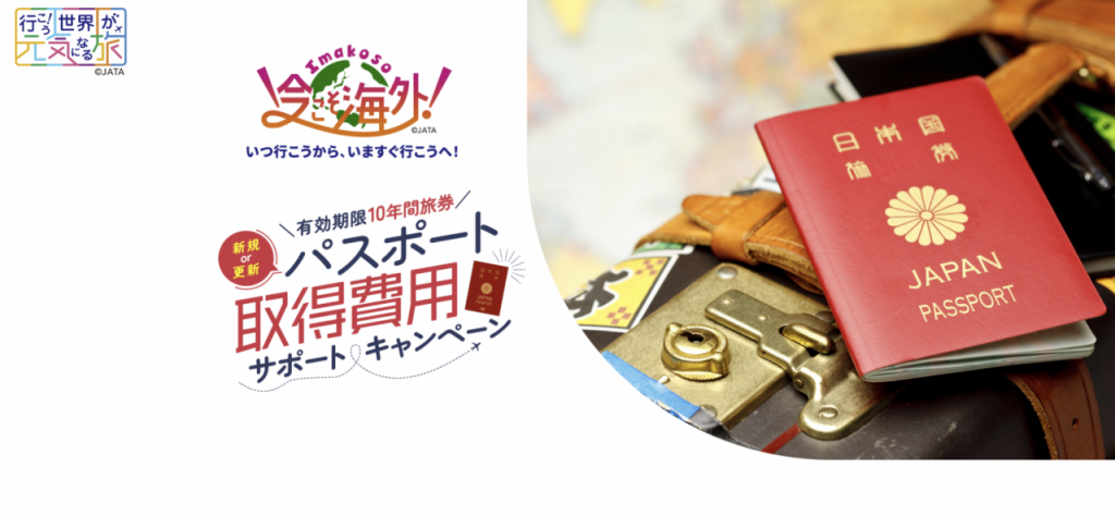 일본여행업협회(JATA)의 여권 취득 비용 지원 캠페인. 신규 취득이나 갱신 모두 지원한다는 내용을 홍보하고 있다.(사진출처=JATA 홈페이지)