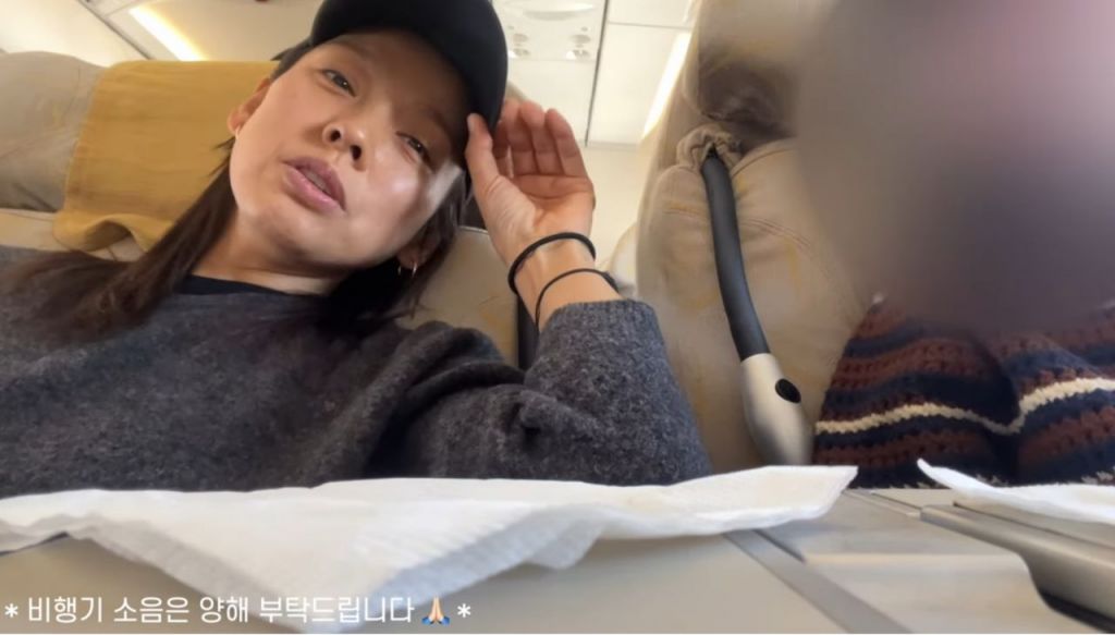 유튜버 'daily여니'가 가수 이효리씨를 비행기 안에서 우연히 만난 모습. [사진=유튜브 'daily여니'채널 갈무리]