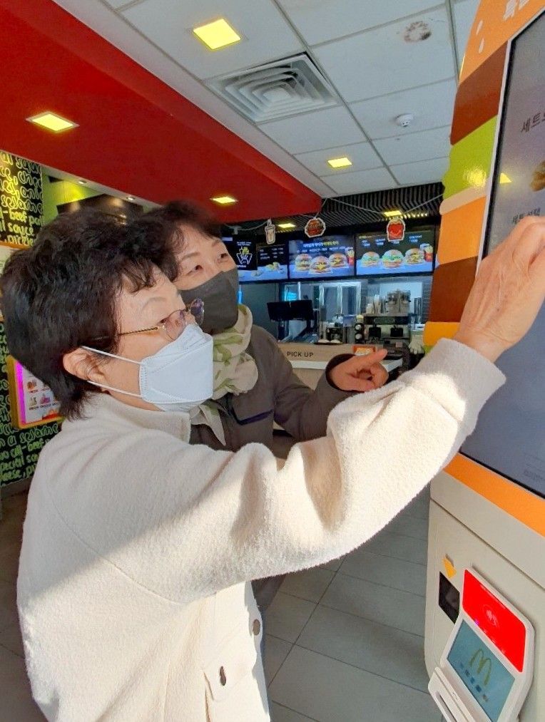 노인복지관과 협력해 경로당에서 ‘스마트폰 및 키오스크 사용법 교육’을 진행하고 있다. 어르신 전문 디지털 교육 강사가 올해 500여명을 대상으로 1대 1 또는 1대 2 맞춤형 교육과 그룹별 교육을 진행했으며 매장 키오스크 주문 확대에 따라 관련 교육을 강화하고 있다.