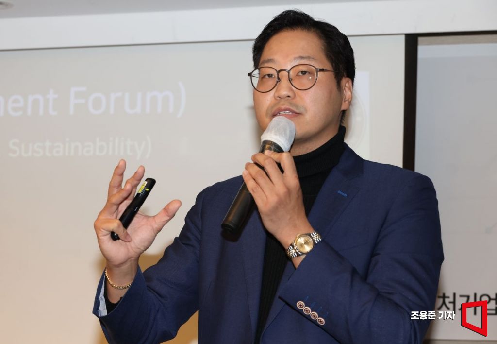 20일 서울 중구 프레스센터에서 열린 '2023 아시아AI대상 시상식' 에서 김형섭 SAP 상무/파트너가 '글로벌 투자 시장 속 한국 스타트업의 위상' 이란 주제로 특별세션 강연을 하고 있다. 사진=조용준 기자 jun21@