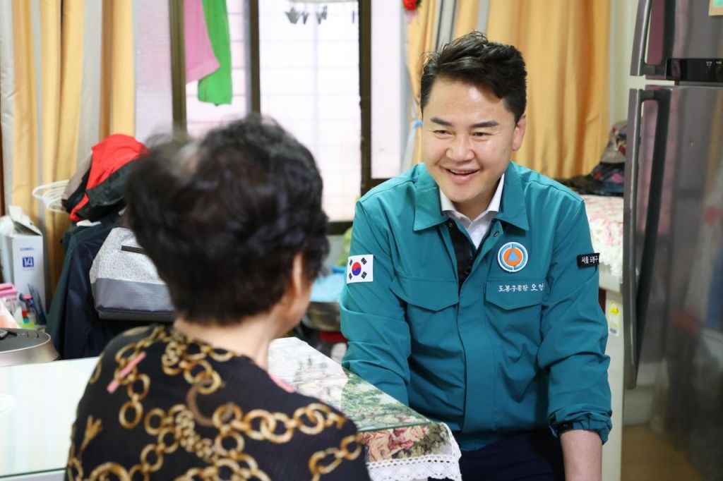 오언석 도봉구청장이 한파 취약 어르신 가정에 방문해 어르신의 안부를 묻고 있다.