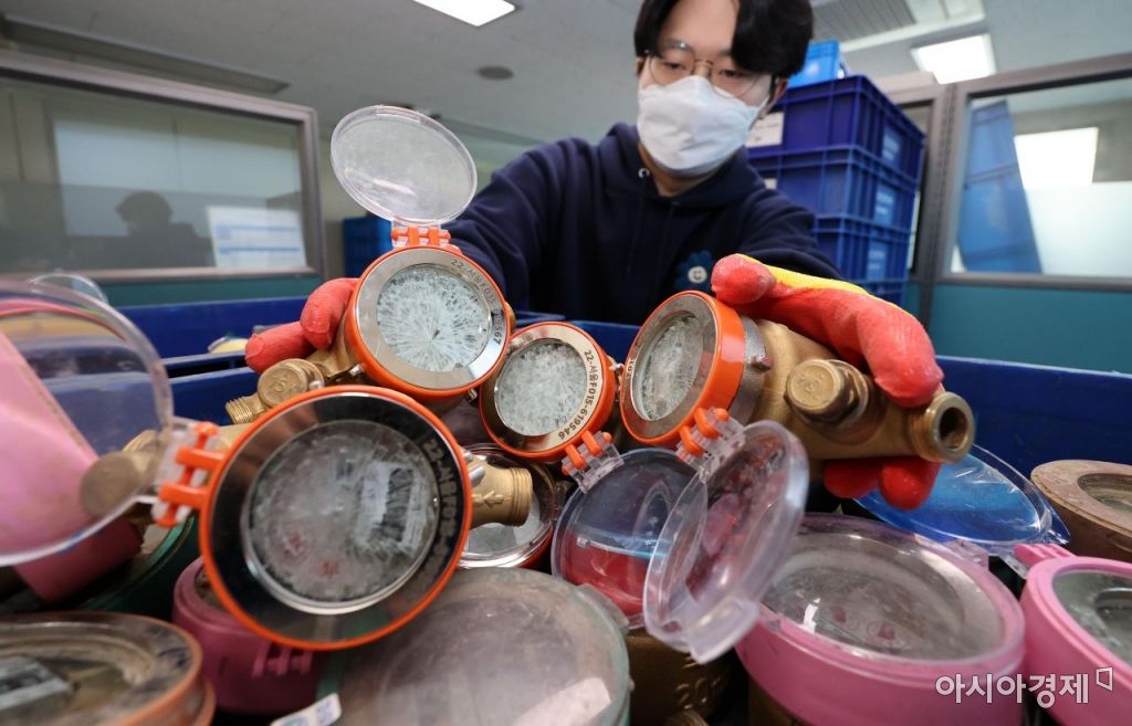 매서운 한파가 이어진 18일 서울 강북구 북부수도사업소에서 관계자가 동파된 수도계량기를 정리하고 있다. 서울시가 이번 겨울 들어 처음으로 수도계량기 동파 '경계' 단계를 발령했다. ‘동파 경계’는 ‘관심-주의-경계-심각’ 4단계의 수도계량기 동파예보제 중 3단계에 해당하며, 일 최저기온이 영하 10도 미만의 날씨가 이틀 이상 지속될 때 발령된다./김현민 기자 kimhyun81@