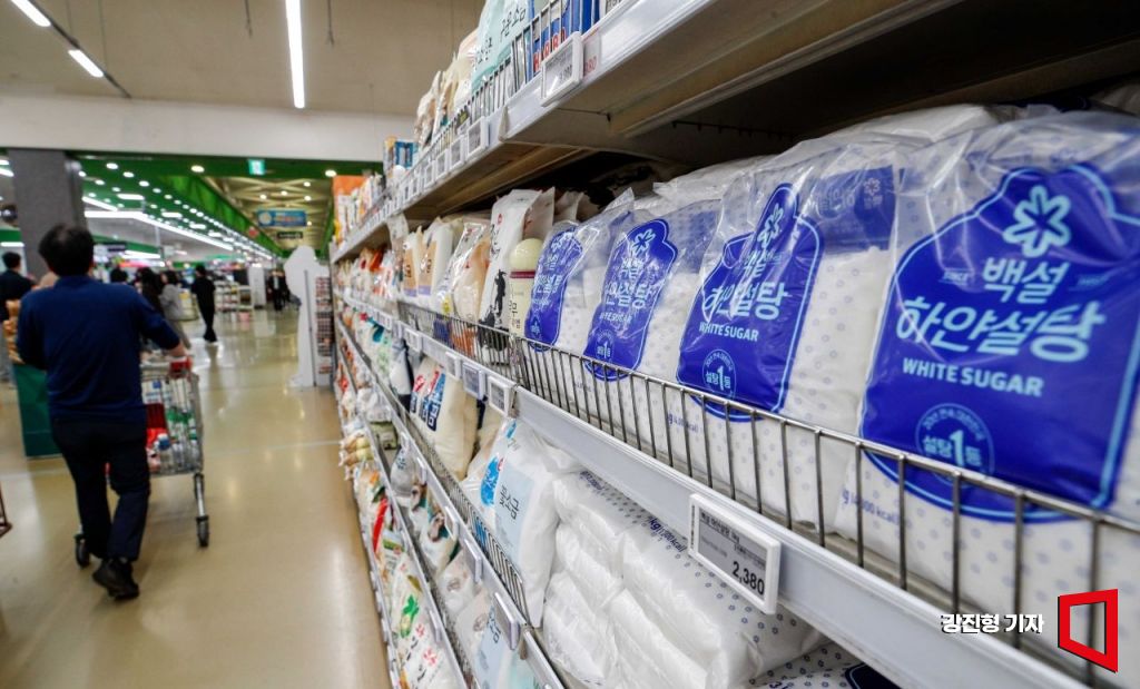 지난달 설탕과 소금의 물가 상승률이 1년 만에 동시 최고가를 기록한 가운데 11일 서울 양재하나로마트에 설탕이 진열돼 있다. 사진=강진형 기자aymsdream@