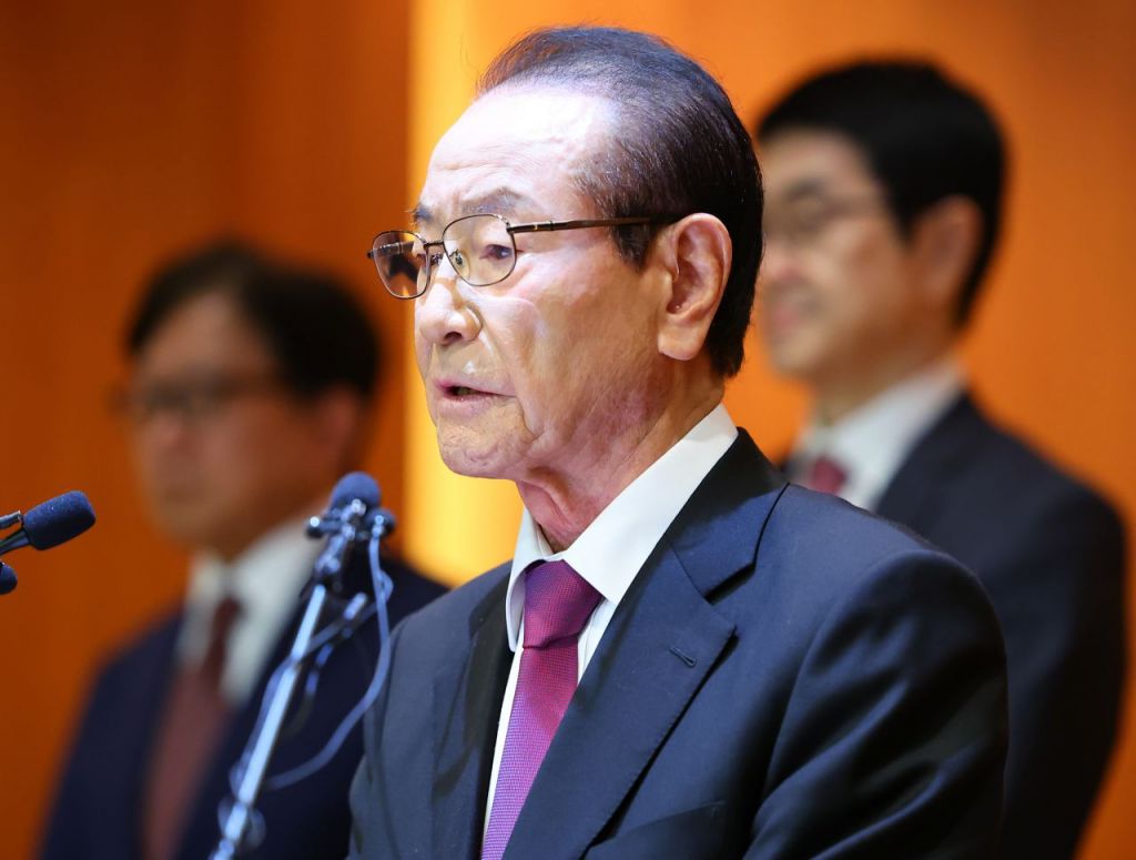 윤세영 태영그룹 창업회장이 9일 오전 서울 여의도 태영건설 본사에서 기자회견을 열고 워크아웃 개시를 위한 추가 자구안 관련 입장문을 발표하고 있다. / 사진출처=연합뉴스