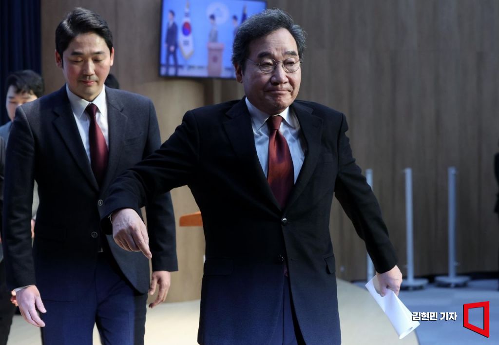 이낙연 전 더불어민주당 대표가 11일 국회 소통관에서 기자회견을 열고 탈당 및 신당 창당을 선언한 뒤 나서고 있다. 사진=김현민 기자 kimhyun81@