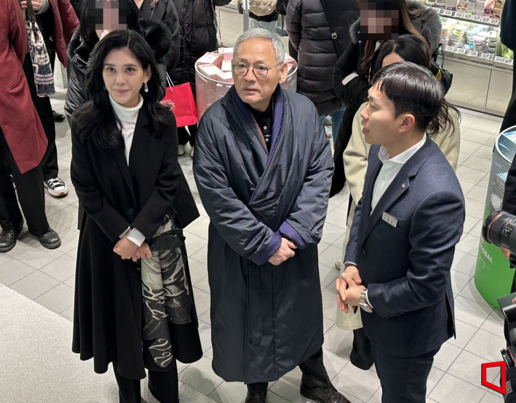 유인촌 문화체육관광부 장관(가운데)과 이부진 한국방문의 해 이사장(호텔신라 대표·왼쪽)이 11일 오전 서울 명동에 위치한 올리브영 명동타운점을 찾아 매장 관계자로부터 설명을 듣고 있다. [사진=이명환 기자]
