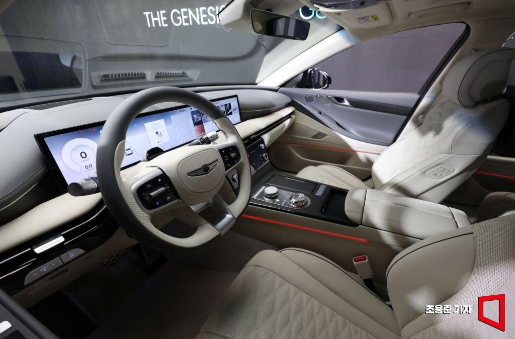 럭셔리 대형 세단 제네시스 G80이 12일 서울 청담동 레스파스 에트나에서 열린 미디어데이에서 공개되고 있다. 부분변경 모델로 선보인 신형 G80은 디테일을 강화하고 하이테크 감성의 실내와 다채로운 편의 사양을 더해 고급스러운 이미지를 향상시켰다. 가격은 2.5 가솔린 터보 5,890만원, 3.5 가솔린 터보 6,550만원, G80 스포츠 패키지는 2.5 가솔린 터보 6,290만원, 3.5 가솔린 터보 7,110만원이다. 사진=조용준 기자 jun21@