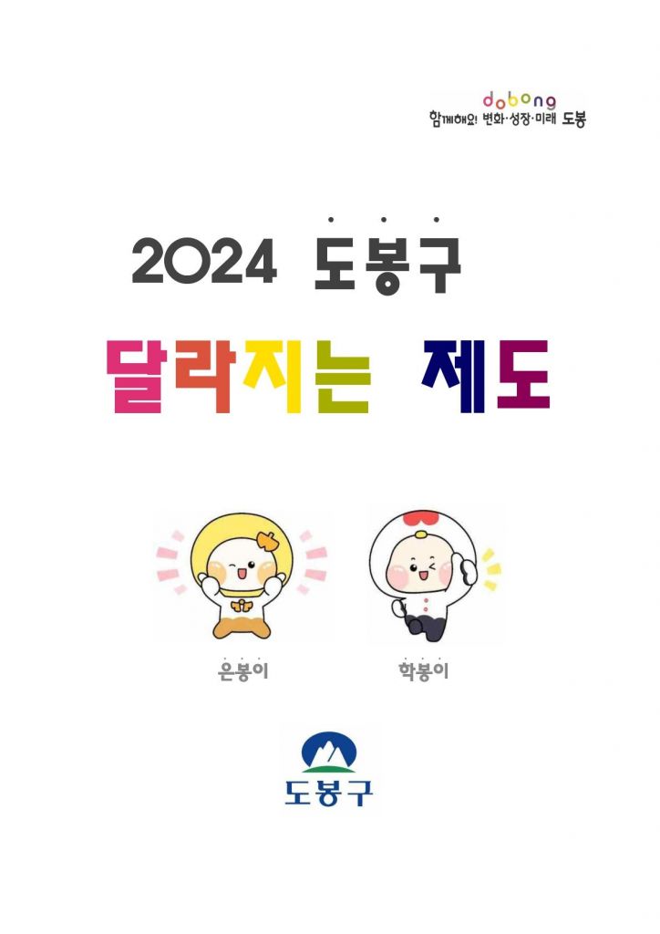 도봉구(구청장 오언석)가 올해 새롭게 시행되거나 달라지는 제도들을 한눈에 살펴볼 수 있는 '2024년 도봉구 달라지는 제도'를 구 대표 홈페이지를 통해 안내한다.