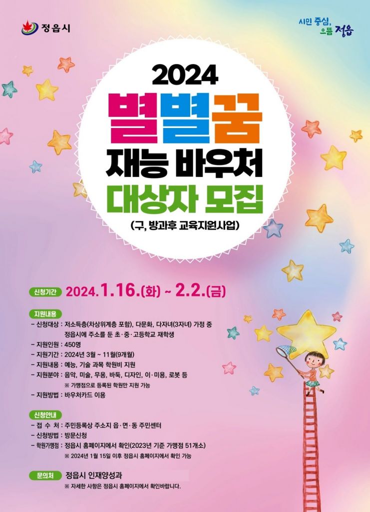 별별꿈 재능바우처 지원사업 포스터.[사진제공=정읍시]