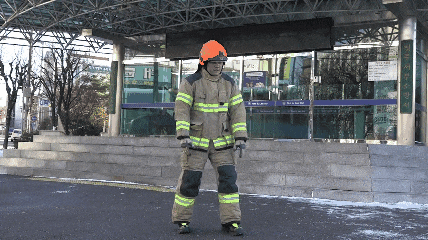 영상을 보면 해당 소방관은 청주서부소방서 앞에 방화복 차림으로 노래에 맞춰 슬릭백을 춘다. 그러다 빙판에 발을 딛는 순간 그대로 바닥에 미끄러져 넘어진다. 화면은 바로 '겨울철 빙판길 안전사고 주의' 안내로 넘어간다. 영상은 ▲그늘진 곳은 빙판길 주의 ▲바닥 면이 거친 등산화 등 신기 ▲장갑 착용으로 양손을 자유롭게 등의 안전사고 예방 지침을 안내했다. 소방관의 방화복 무게는 3㎏ 내외로 화재현장에서 완전무장을 하면 30㎏에 육박한다.