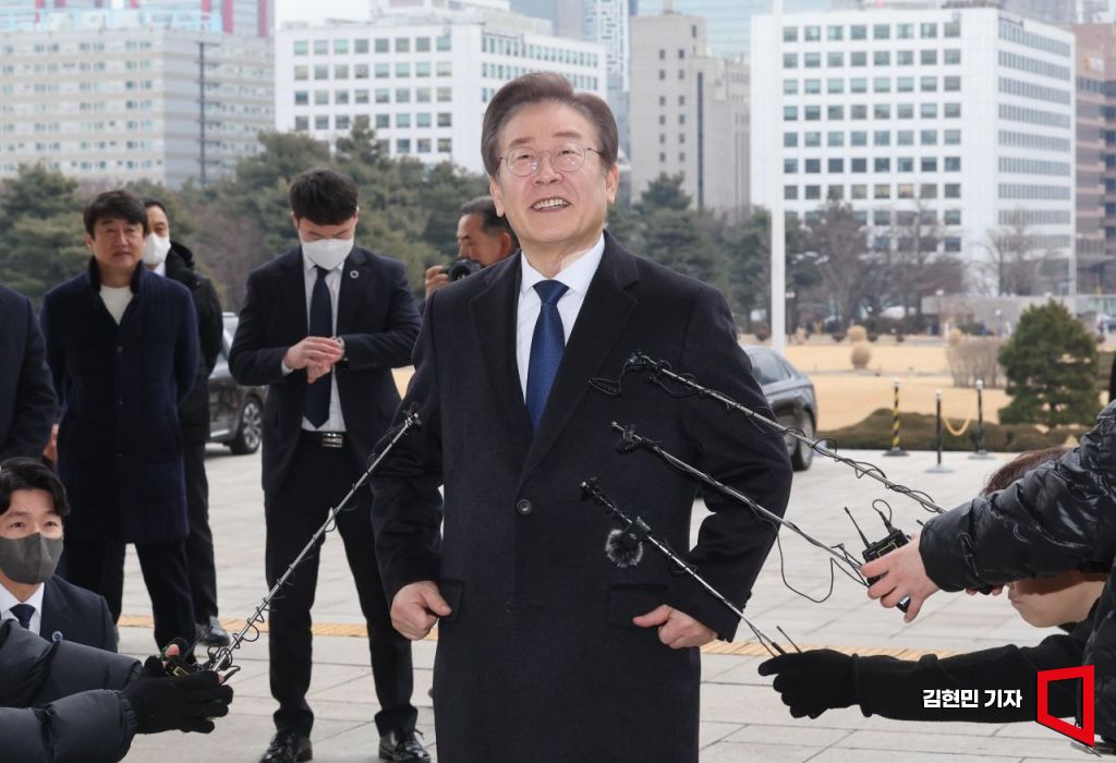 이재명 더불어민주당 대표가 17일 피습 보름 만에 국회로 출근하며 인사말을 하고 있다. 사진=김현민 기자 kimhyun81@