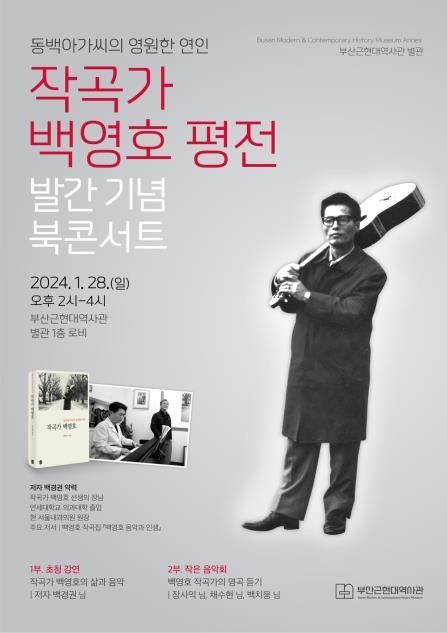 부산이 기억해야 할 인물인 故 백영호 작곡가의 일대기를 담은 평전 발간을 기념하기 위해 마련된 북콘서트 행사는 1부와 2부로 나눠 진행된다.
