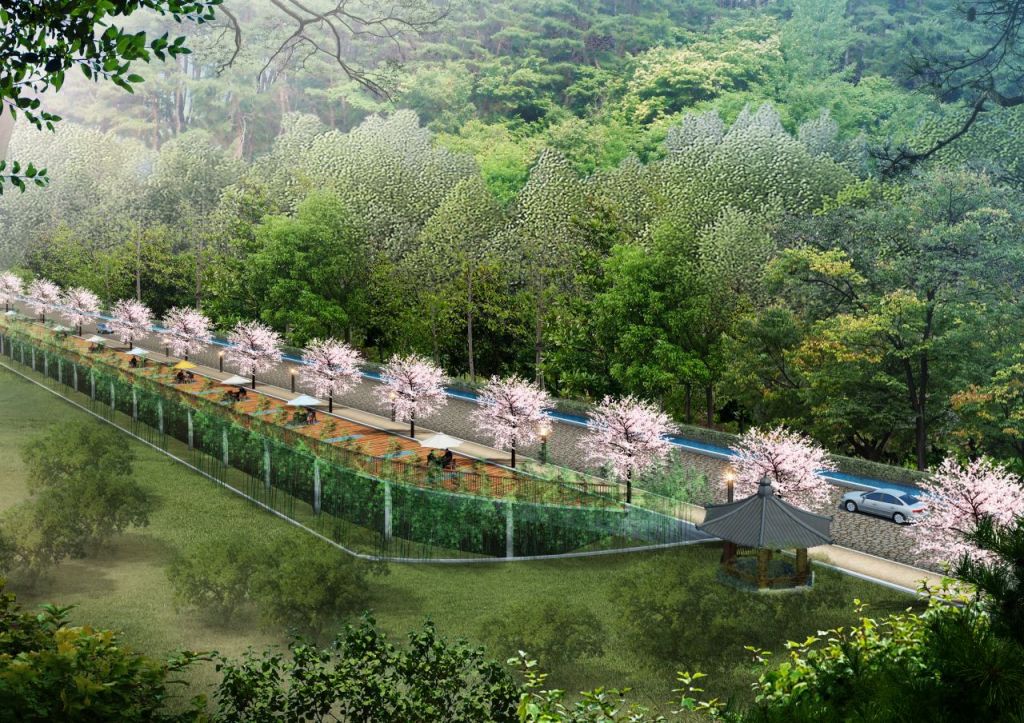 이외에도 일반 보행자의 안전을 위해 맨발 산책로는 물론 차도와 보행자와의 이동 공간을 구분하고 인문학 광장, 소나무 쉼터, 전망대 등 다양한 테마 공간으로 조성된다.