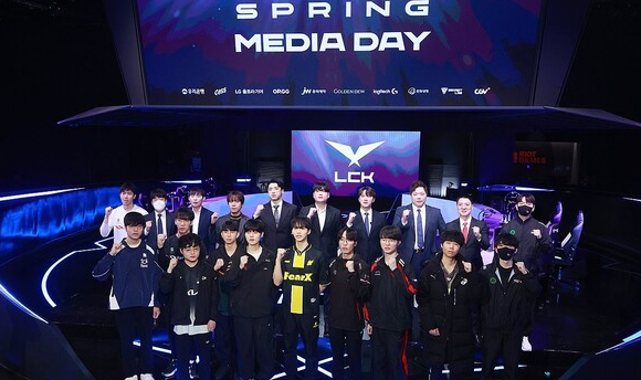 지난 10일 서울 종로구 LCK아레나에서 열린 2024 리그 오브 레전드 챔피언스 코리아(LCK) 스프링 개막 미디어데이에서 선수들과 감독이 기념촬영을 하고 있다. [사진=연합뉴스]