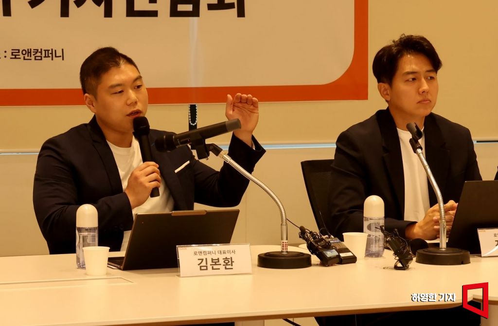법무부의 변호사징계위 결정 관련 로앤컴퍼니 기자회견이 지난해 10월4일 서울 강남구 로앤컴퍼니에서 열렸다. 김본환 대표가 기자들의 질문에 답하고 있다. 오른쪽은 정재성 부대표. 사진=허영한 기자 younghan@