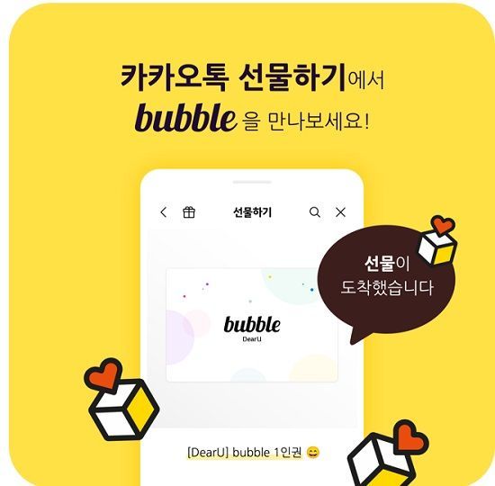 글로벌 팬플랫폼 기업 디어유는 버블 구독 편의성 및 상품 접근성을 높이기 위하여 ‘카카오톡 선물하기’ 내 ‘버블’ 구독권 판매를 다음 주에 시작한다고 1일 밝혔다.