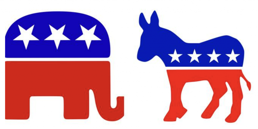 미국 공화당과 민주당 로고(왼쪽부터). 미국 양당제의 주축인 공화당과 민주당은 각각 150년과 200년이 넘는 역사를 갖고 있다.