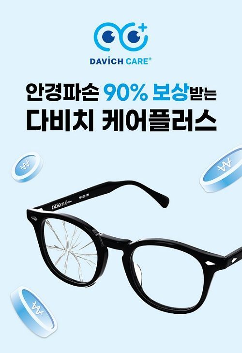‘다비치 케어플러스’는 서비스 가입료 3천원을 내면 다비치에서 구매한 안경이 서비스 가입일로부터 1년 내 파손되었을 경우, 실 구매가의 90%를 보상하는 서비스다. 최대 보상 금액은 27만원이다.