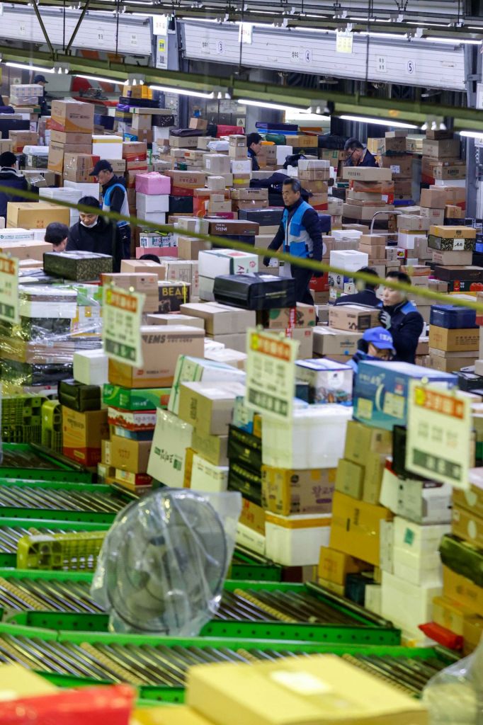민족 최대 명절 설날을 앞둔 1일 서울 광진구 동서울우편물류센터에서 배달원들이 명절 소포상자를 분류하고 있다. 사진=강진형 기자aymsdream@