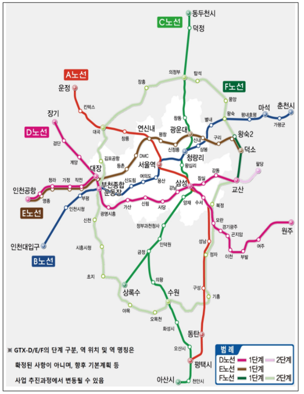 수도권 광역급행철도(GTX) 노선 계획도 [국토교통부 제공]