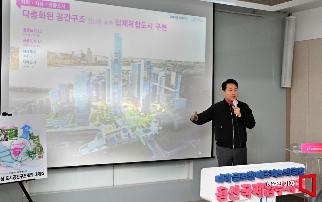 서울시는 5일 용산역에서 이 같은 내용의 ‘용산국제업무지구 개발계획’을 발표했다. 오세훈 서울시장은 "도심 한가운데가 약 50만㎡가 비어있다가 동시에 한꺼번에 개발되는 사례는 드물다"며 "기능, 효율과 함께 휴식공간으로 다가가는 것에 많은 공을 들였다. 글로벌 톱5 도시에 진입시키는 밑바탕으로 용산국제업무지구를 활용하겠다"고 밝혔다.