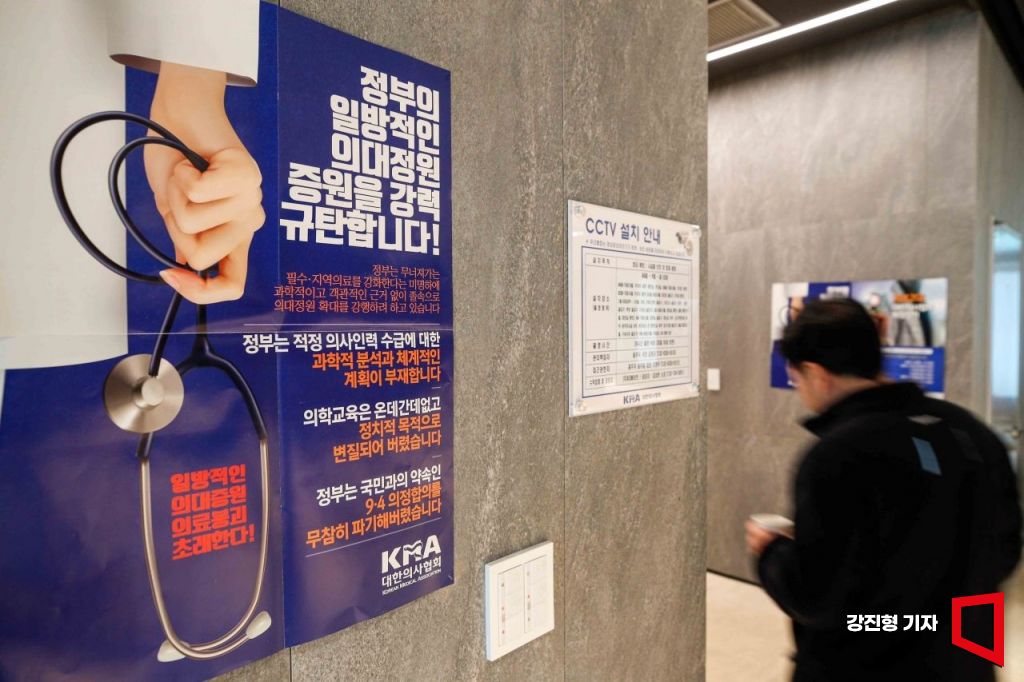 2025학년도 의대 증원규모 정부 발표를 앞둔 6일 서울 용산구 대한의사협회에 의대 정원 증원 규탄 포스터가 붙어 있다. 사진=강진형 기자aymsdream@