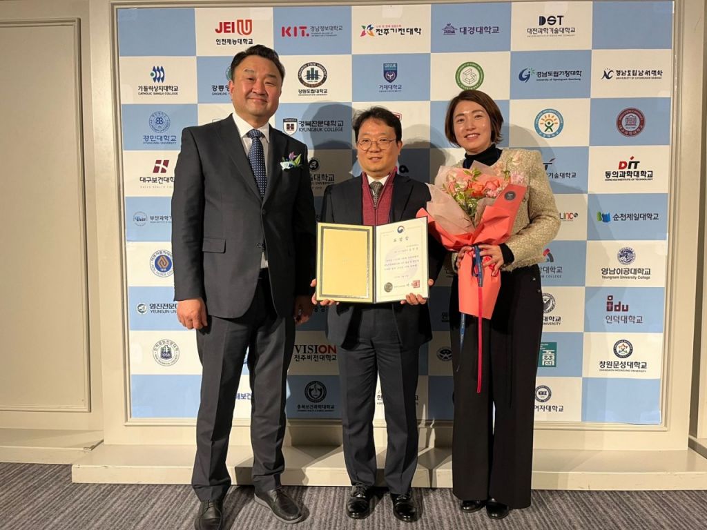 동의과학대학교(총장 김영도) LINC 3.0사업단 김경호 단장이 지난 1일 부산 파라다이스 호텔에서 열린 ‘2023 동계 LINC 3.0사업 성과확산 포럼’에서 부총리 겸 교육부장관상을 받았다.