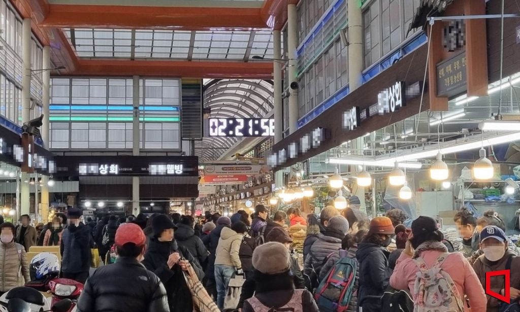 설 연휴를 앞둔 지난 7일 서울 동대문구 경동시장. 한 발짝 내디딜 때마다 옆 사람과 어깨가 부딪힐까 조심히 걸어야 할 정도로 발 디딜 틈이 없었다. 시장을 찾은 이들은 다가오는 명절에 대한 기대감에 부푼 모습이었지만, 시장 상인들의 표정은 제각각 달랐다. 길게 줄 지어선 사람들로 정신없이 바쁜 점포가 있는가 하면, 명절 분위기가 전혀 나지 않는 곳도 눈에 띄었다.