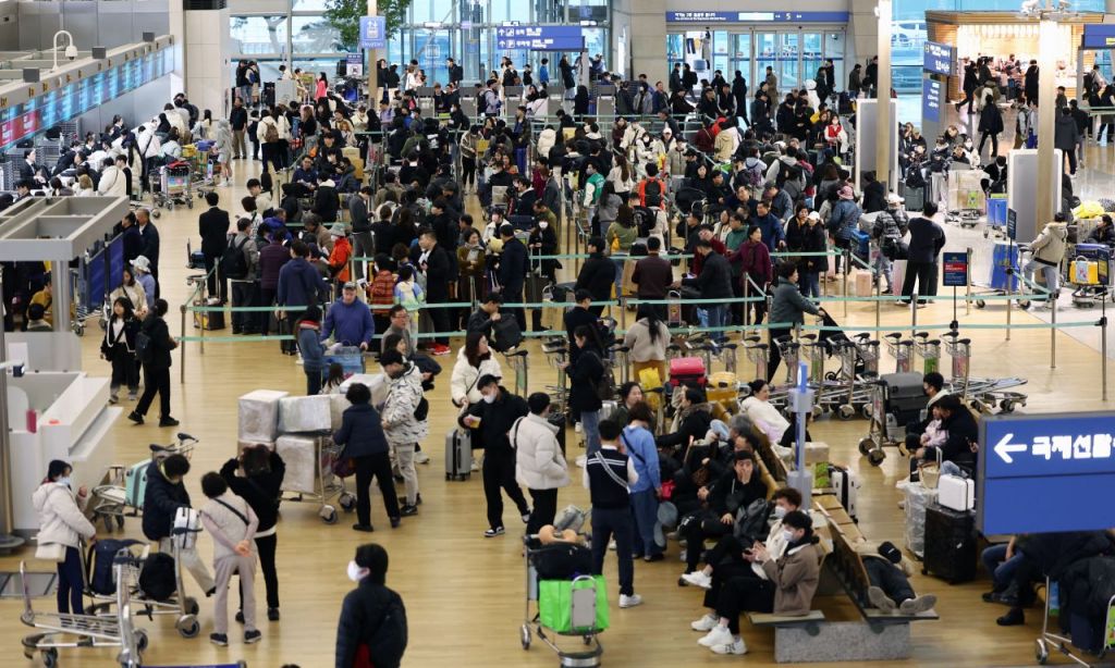 설 명절 연휴를 하루 앞둔 8일 오전 인천국제공항 제1여객터미널 출국장이 여행객들로 북적이고 있다. [이미지출처=연합뉴스]
