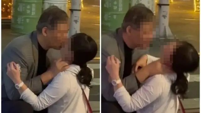 대만 정보기관 '국가안전국' 고위 간부인 셰징화가 강제 키스하는 장면. [사진출처=대만 TVBS 뉴스 캡처]