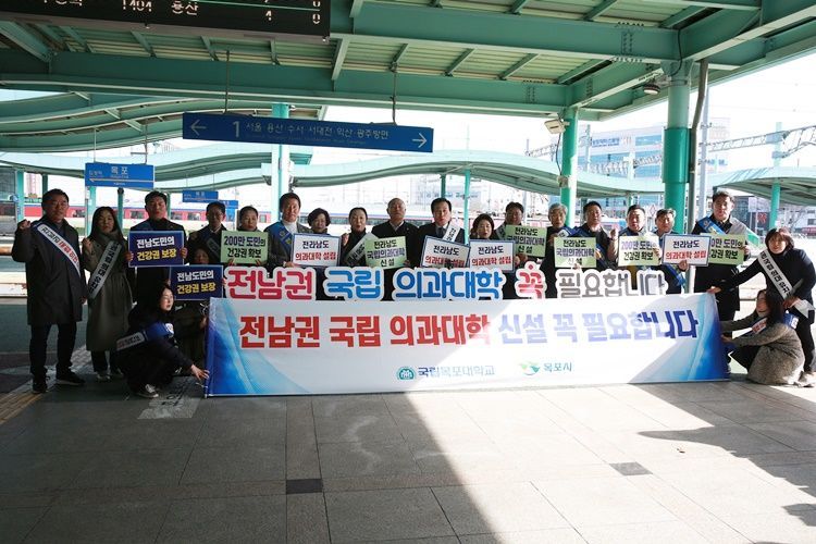 11일 목포대에 따르면 이날 캠페인에서는 김원이 국회의원, 박홍률 목포시장을 비롯해 전남도·전남도의회, 목포시·목포시의회, 국립목포대학교 관계자 등 40여 명이 목포역에서 귀성객과 지역민을 대상으로 전남의 의료 여건과 의과대학 설립 필요성을 설명하고 범국민적 지지와 응원을 요청했다.