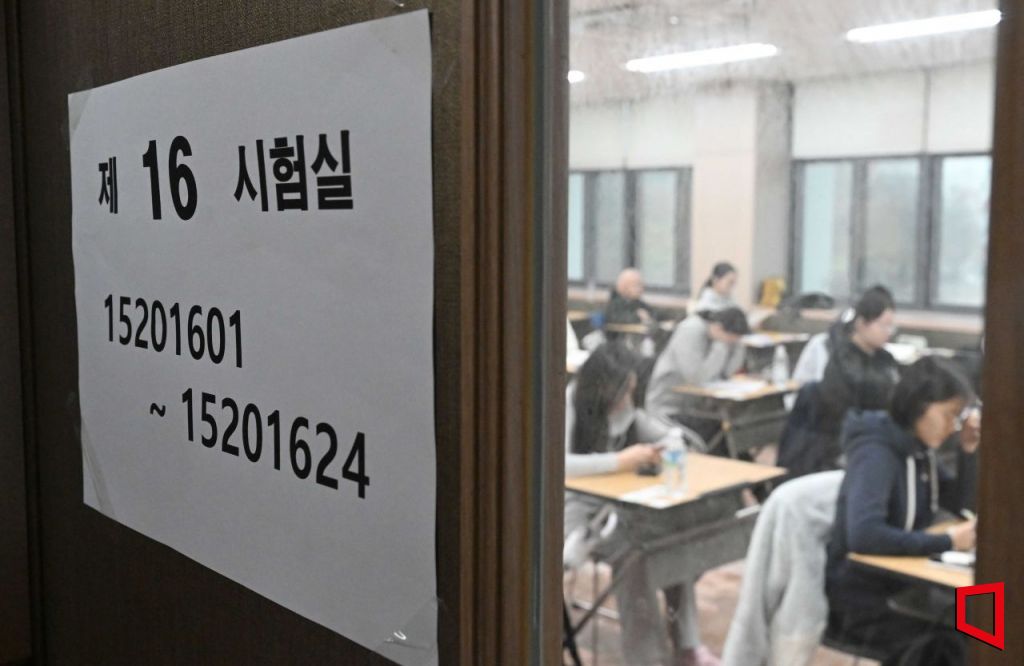 2024학년도 대학수학능력시험일인 16일 서울 중구 이화여자외국어고등학교에서 수험생이 시험 시작을 기다리고 있다. 사진=사진공동취재단