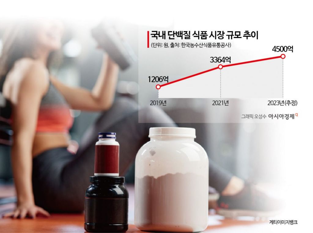 이에 한국농수산식품유통공사에 따르면 2018년 813억원에 그친 국내 단백질 식품 시장 규모는 2021년 3364억원으로 3년 만에 네 배로 커졌다. 지난해에는 4500억원대로 성장한 것으로 추정된다. 대표적인 인기 상품은 일동후디스 하이뮨, 매일유업셀렉스 등 단백질 음료다. 하이뮨은 지난해 10월 기준 출시 3년7개월 만에 누적 매출액 4000억원을 돌파했다. 셀렉스 매출액은 2022년 말 기준 3100억원이었다.