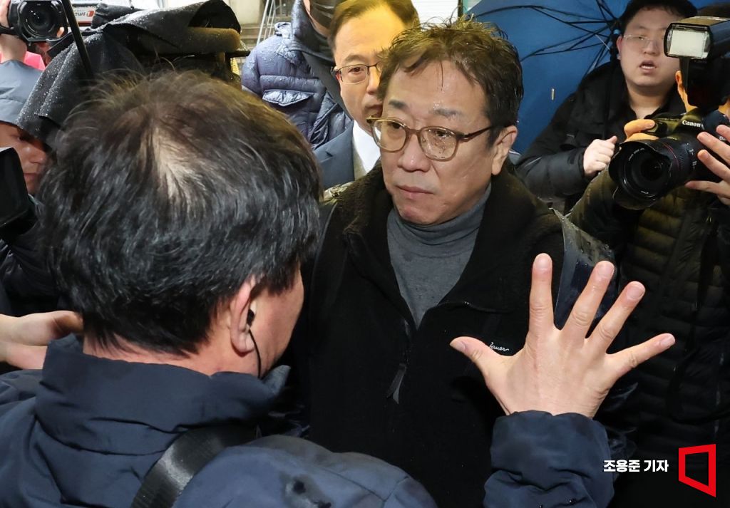 15일 서울 종로구 대한축구협회 앞에서 시민단체관계자가 정몽규 축구협회장 면담을 요구하며 입장을 시도하자 협회 직원이 저지하고 있다. 사진=조용준 기자 jun21@