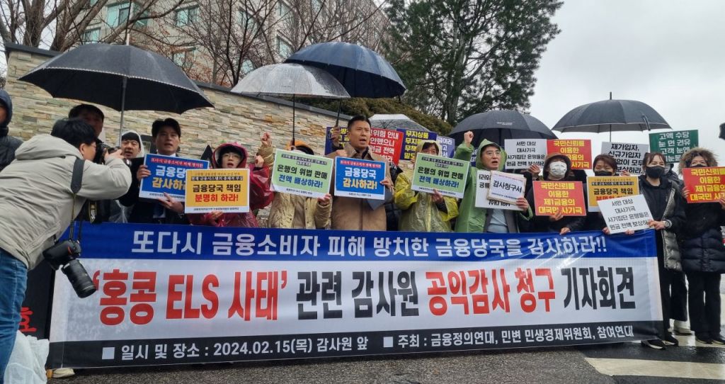 시민단체들이 홍콩 H지수 주가연계증권(ELS) 판매를 부실하게 감시·감독한 책임이 있다며 금융위원회와 금융감독원에 대한 공익 감사를 청구하고 나섰다.