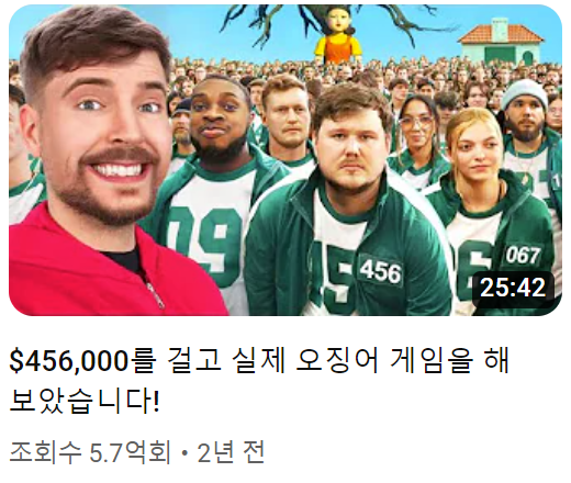 그의 영상 중 최다 조회 수를 기록한 것은 2년 전 그가 주최한 '오징어 게임' 영상이다. 상금 45만6000달러(약 6억원)를 걸고 일반인들을 모아 진행한 이 프로젝트는 조회 수가 현재 5억7000만회에 달한다. 타임지는 그를 "비디오 마법사"로 지칭하면서 "젊은 세대나 자녀가 있는 사람 중 미스터 비스트를 모르는 사람은 지구상에 아마 없을 것"이라고 평가했다.
