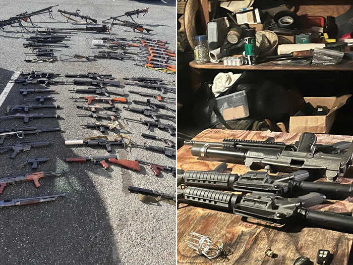 경찰은 A씨의 집에서 군용 기관총 11정, 권총 133정, 소총 37정, 돌격소총 60정, 산탄총 7정, 대용량 탄창 3000정을 발견했다. 또 A씨의 집에선 소음기 20개와 조명탄 4개도 발견됐다. 여러 개의 수류탄도 발견됐으나 폭발물 처리반 조사 결과, 해당 수류탄은 비활성화된 상태였던 것으로 확인됐다.