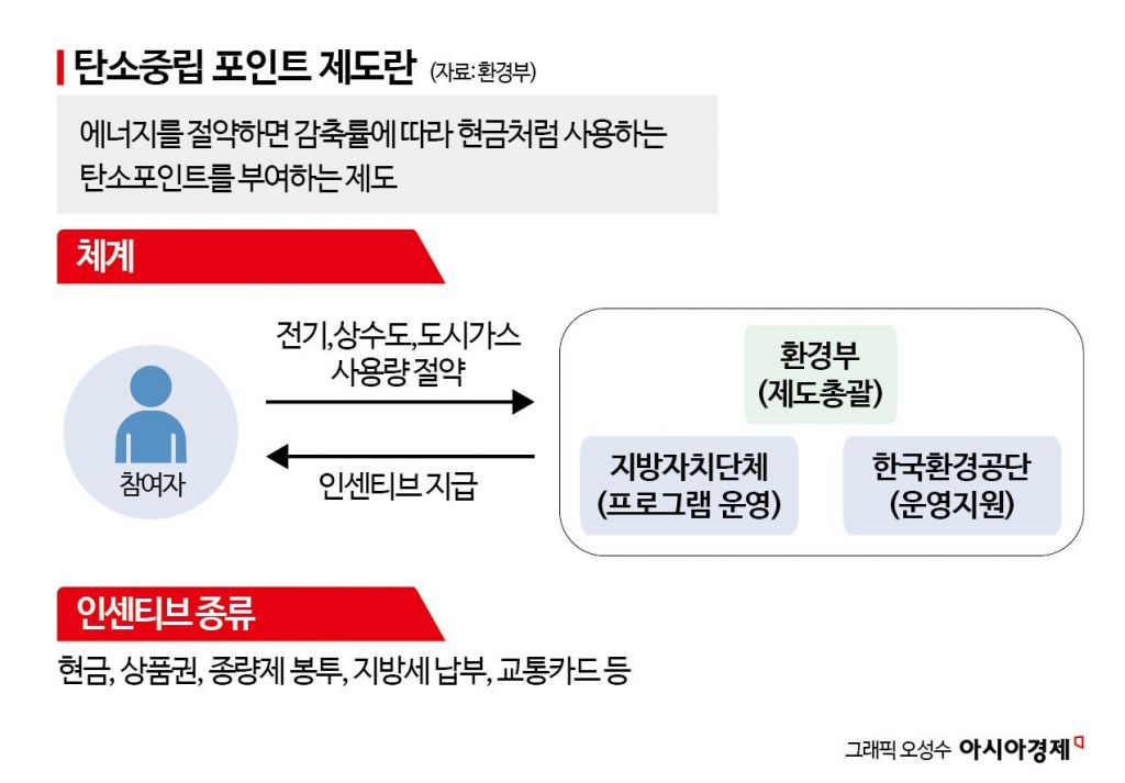 이는 지난해 3월 공개한 ‘2030 온실가스 감축목표’와 모순된다. 당시 정부는 공공부문뿐 아니라 기업과 시민사회의 탄소저감 참여를 끌어내겠다고 밝혔다. 이를 위해 탄소중립 포인트 제도의 인센티브를 확대한다고 약속했다. 현재 저감 활동에 대한 인센티브가 제한적인 만큼 앞으로는 인센티브 적용 범위를 늘려 국민생활 모든 요소를 저탄소화 하겠다는 전략도 담았다.