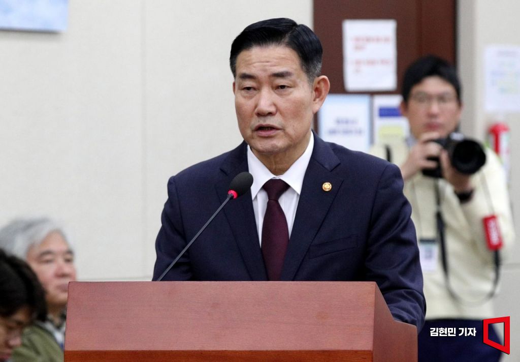 신원식 국방부 장관이 23일 국회에서 열린 국방위원회 전체회의에서 현안보고를 하고 있다. 사진=김현민 기자 kimhyun81@