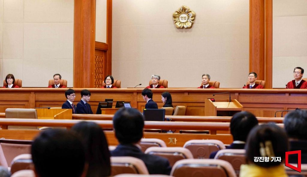 이종석 헌법재판소장이 28일 서울 종로구 헌법재판소 대심판정에서 재판을 주재하고 있다. 이날 헌법재판소는 주택임대차보호법의 계약갱신청구권과 전월세상한제에 대해 합헌 결정을 내렸다. 사진=강진형 기자aymsdream@