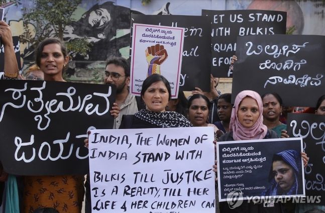 성폭행 사건 처리방식에 항의하는 인도 시민단체 회원들[사진=EPA 연합뉴스]