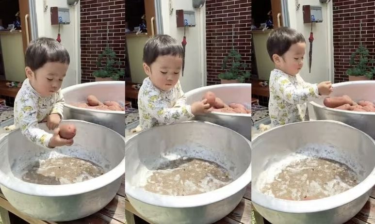 4일 일본 후지뉴스네트워크(FNN)는 엄마인 아라카와 기즈씨가 틱톡에 게시한 3살 남자아이 아라카와 렌토군의 사연을 전했다. ‘아마 속은 할머니’라는 내레이션으로 시작되는 동영상에는 현재 5살인 렌토군이 3살 시절 고구마를 나르는 모습으로 시작된다. 렌토군은 대야에 들어간 고구마를 익숙한 모습으로 옮겨 담고 방울토마토를 작은 손으로 세척한다. 필러를 이용해 홍당무 껍질 벗기기도 잘한다. 삶은 감자를 으깨거나 야채의 수확하는 모습도 전해졌다.
