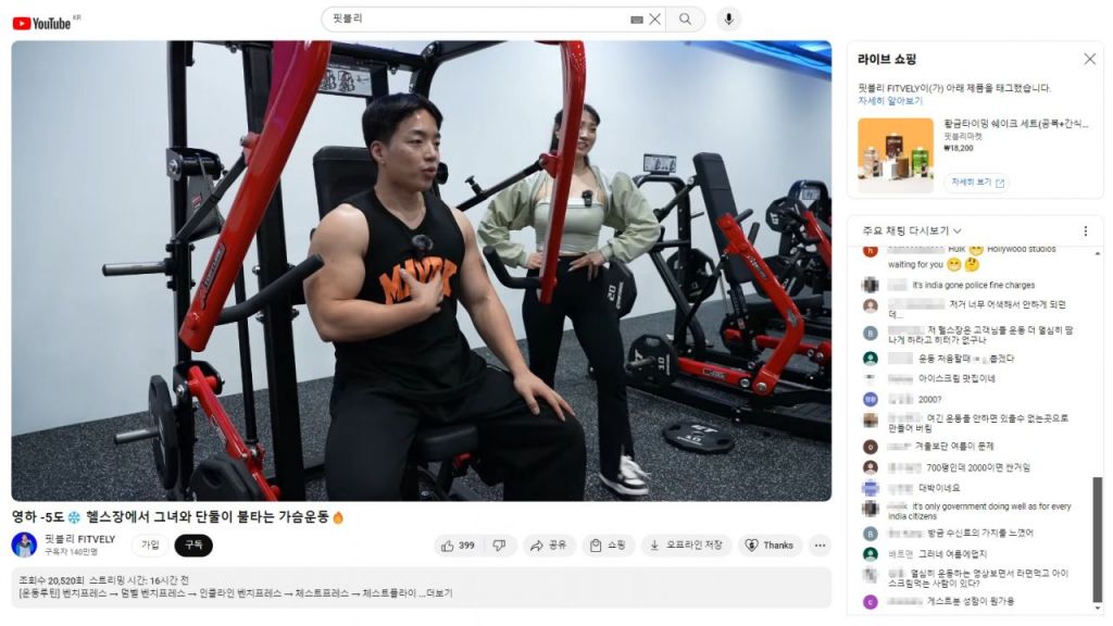 '핏블리' 채널 라이브 스트리밍 콘텐츠에서 쉐이크 상품을 노출해 판매 중인 모습. [사진=핏블리 유튜브 캡처]