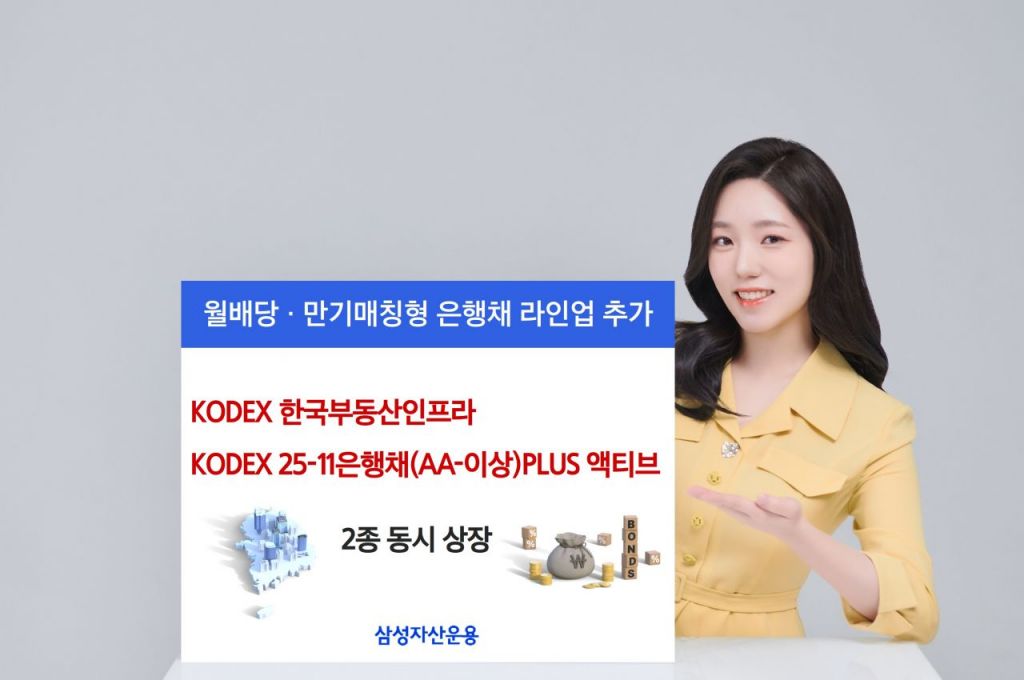 삼성자산운용은 'KODEX 한국부동산리츠인프라 ETF'와 'KODEX 25-11 은행채(AA-이상) PLUS 액티브 ETF' 2종을 신규 상장한다고 5일 밝혔다.