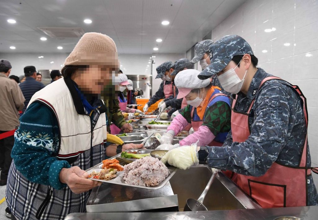 해군 3함대 장병들이 급식 봉사활동을 하고 있다.