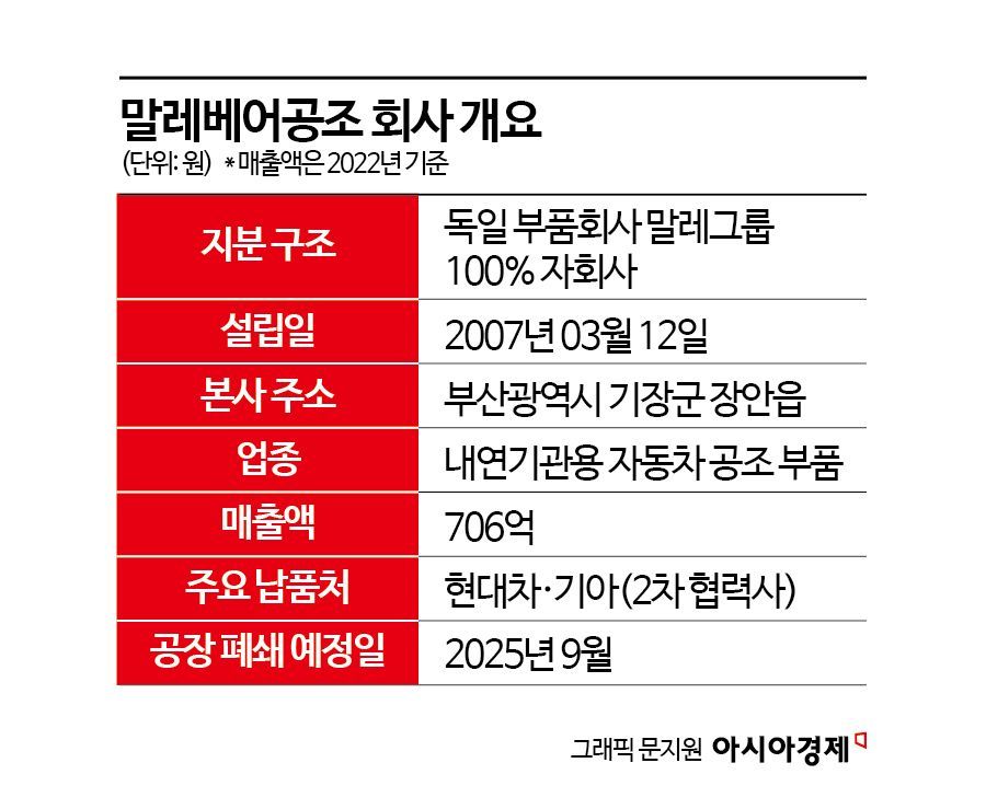 12일 업계에 따르면 최근 말레베어공조(이하 말레베어)는 부산광역시 기장군에 위치한 한국 공장을 2025년 9월 폐쇄할 예정이다. 이달 중 독일 본사 임원이 방한해 사업 재편의 방향을 설명하고 직원 해고에 따른 위로금 등을 포함한 철수 세부 일정을 논의한다.