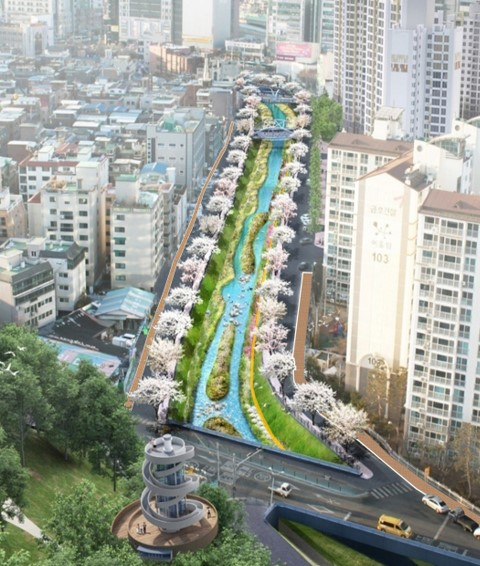구리 인창천의 경우 복개 구간 490m를 덮은 콘크리트 구조물을 걷어낸 뒤 생태 수로와 습지를 조성한다.