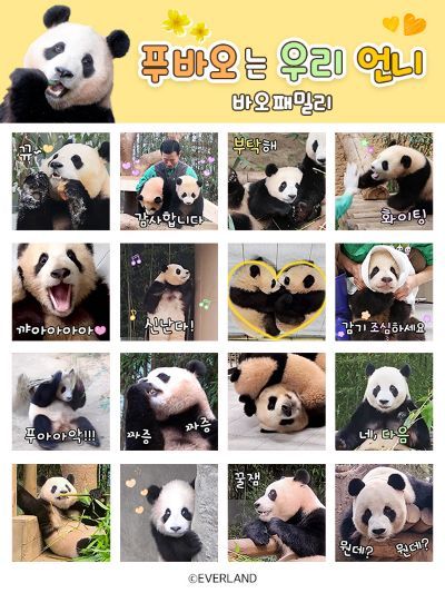 에버랜드 관계자는 "판다 가족의 다양한 모습을 소장하고 싶어하는 팬들의 의견을 반영해 푸바오 뿐 아니라 쌍둥이 동생 루이바오, 후이바오 자매 모습을 담은 이모티콘을 출시했다"고 말했다.