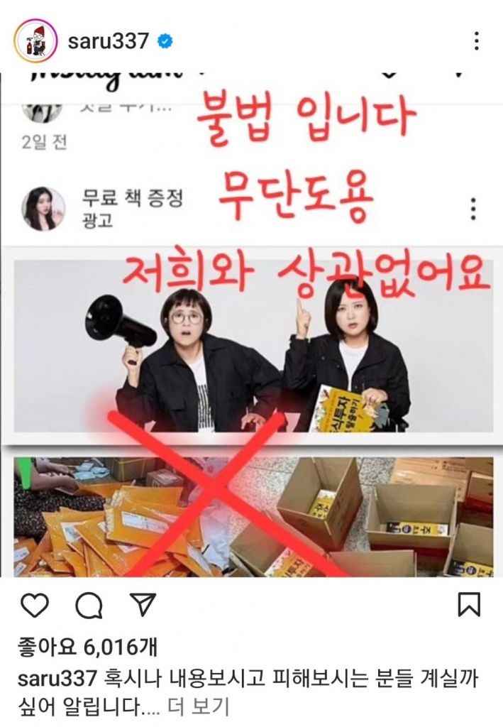 방송인 송은이가 "불법 사칭 광고에 주의하라"며 직접 자신의 인스타그램에 올린 글 [이미지출처=송은이 인스타그램 캡처]