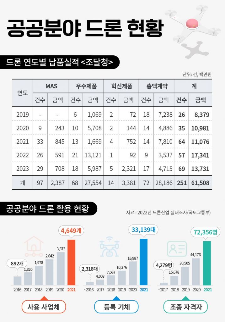 하지만 최근 민간에서 글로벌 기업 위주로 고품질 드론 제품이 빠르게 시장 규모를 키워가는 것과 달리 공공시장에서는 저가·저품질 중국산 드론의 점유율이 높아지는 문제가 지속됐다.